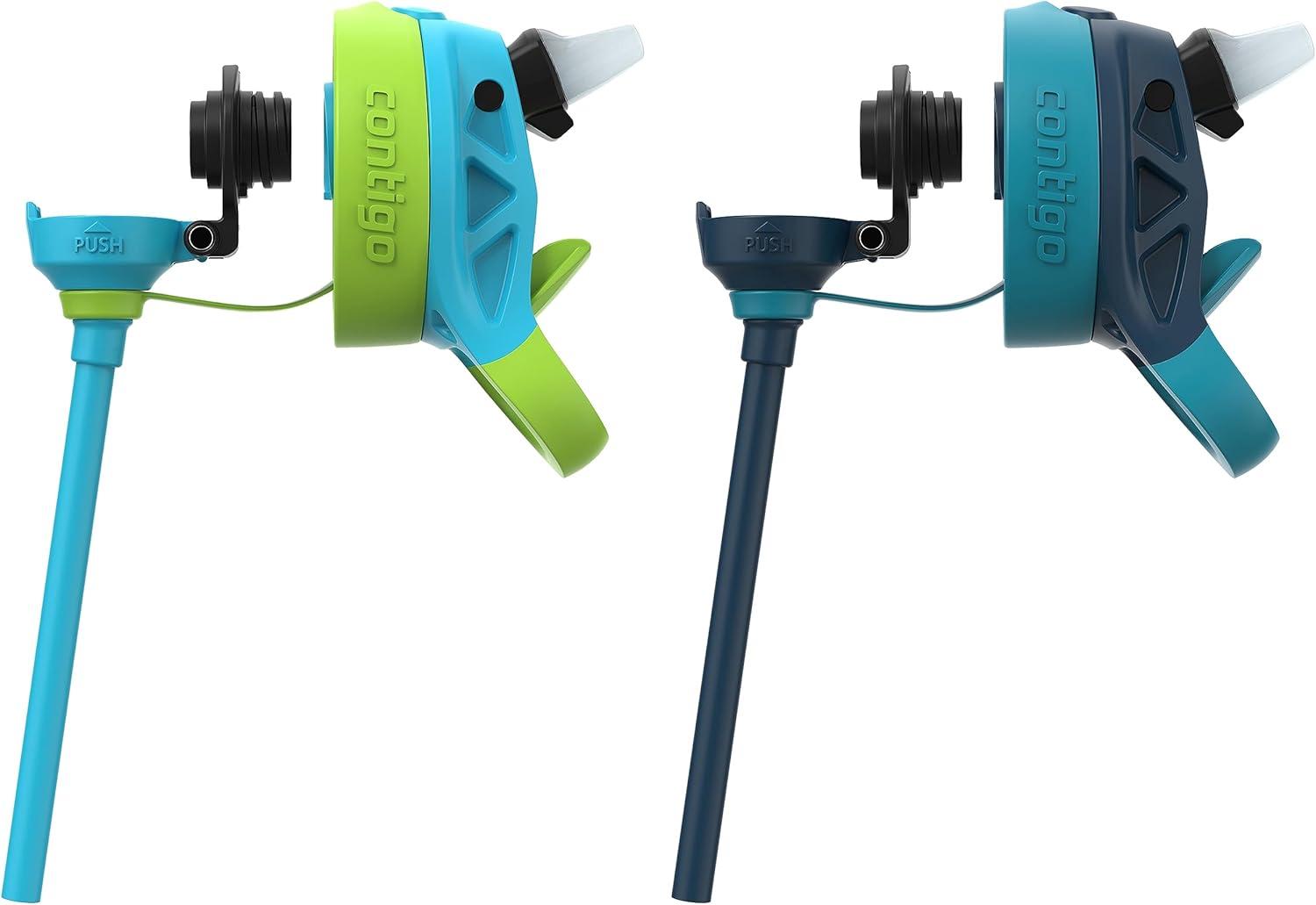 Contigo Aubrey Kids Water Bottle with Silicone Straw and Spill Proof Lid, 14oz, 2-Pack, Whales & Dragon, Blue & Green(Azalea/Jade & Blue Raspberry/Azalea)