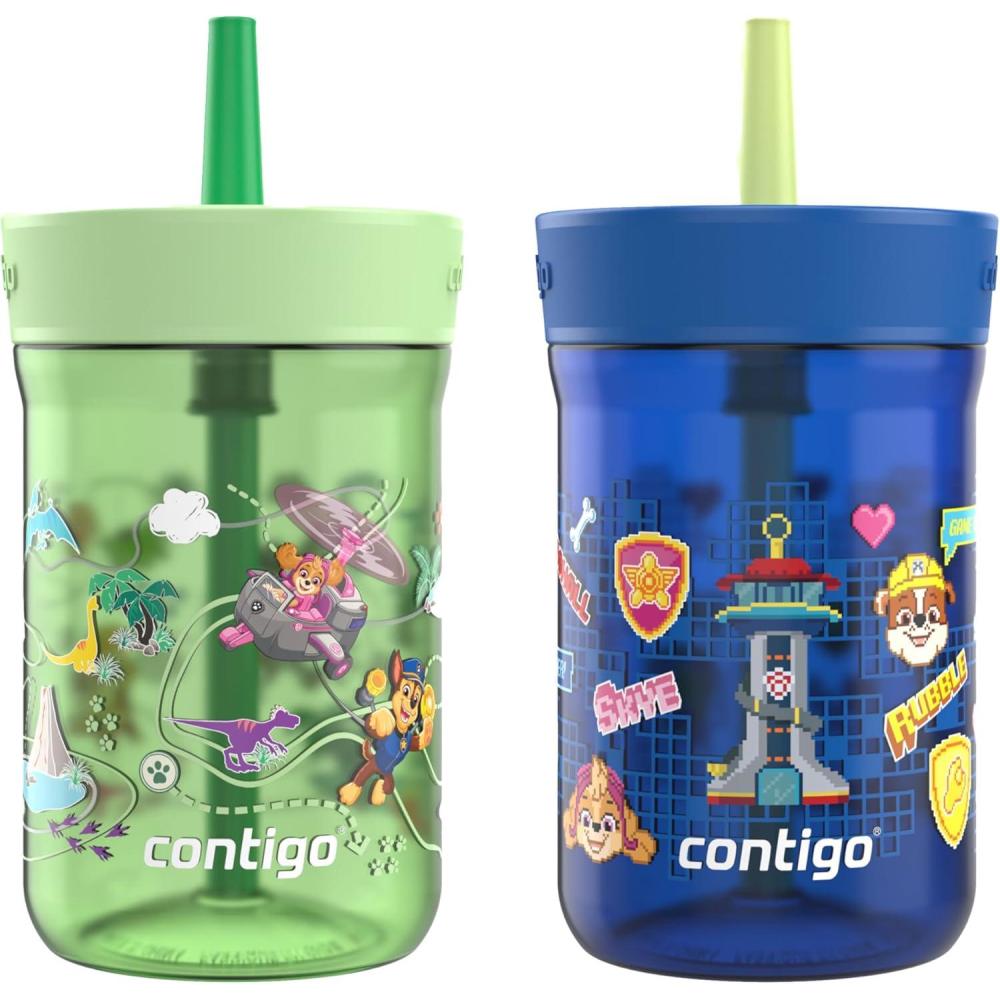 Contigo Paw Patrol Spill-Proof Kids Tumbler with Straw | BPA-Free Plastic Water Bottle | 14oz 2-Pack for Home School Travel(Cool Lime PAW Patrol (Color changing straw); Glacier PAW Patrol (Color Changing Body))