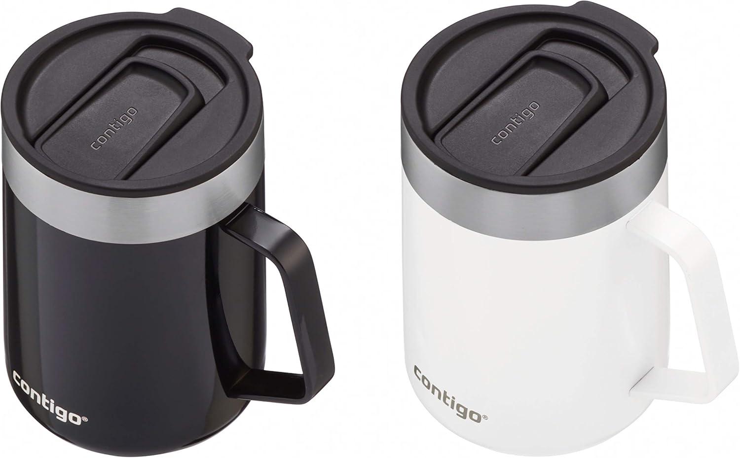 Experience the perfect balance of style and functionality with the Streeterville Stainless Steel Vacuum-Insulated Coffee Mugs. This pack of two 14oz mugs combines sophisticated metallic design in Licorice and Salt shades with the practicality of keeping beverages hot for up to 5 hours and cold for up to 15 hours. Perfect for sipping coffee while working from home or during short neighborhood walks. With a sleek stainless steel handle, these mugs offer comfortable drinking, and the splash-proof lid ensures no spills. The non-slip grip base allows confidence in setting your mug on any surface, reducing clinks and scratches. Made for convenience, they fit under most single-serve brewers and are top-rack dishwasher-safe for easy cleanup.