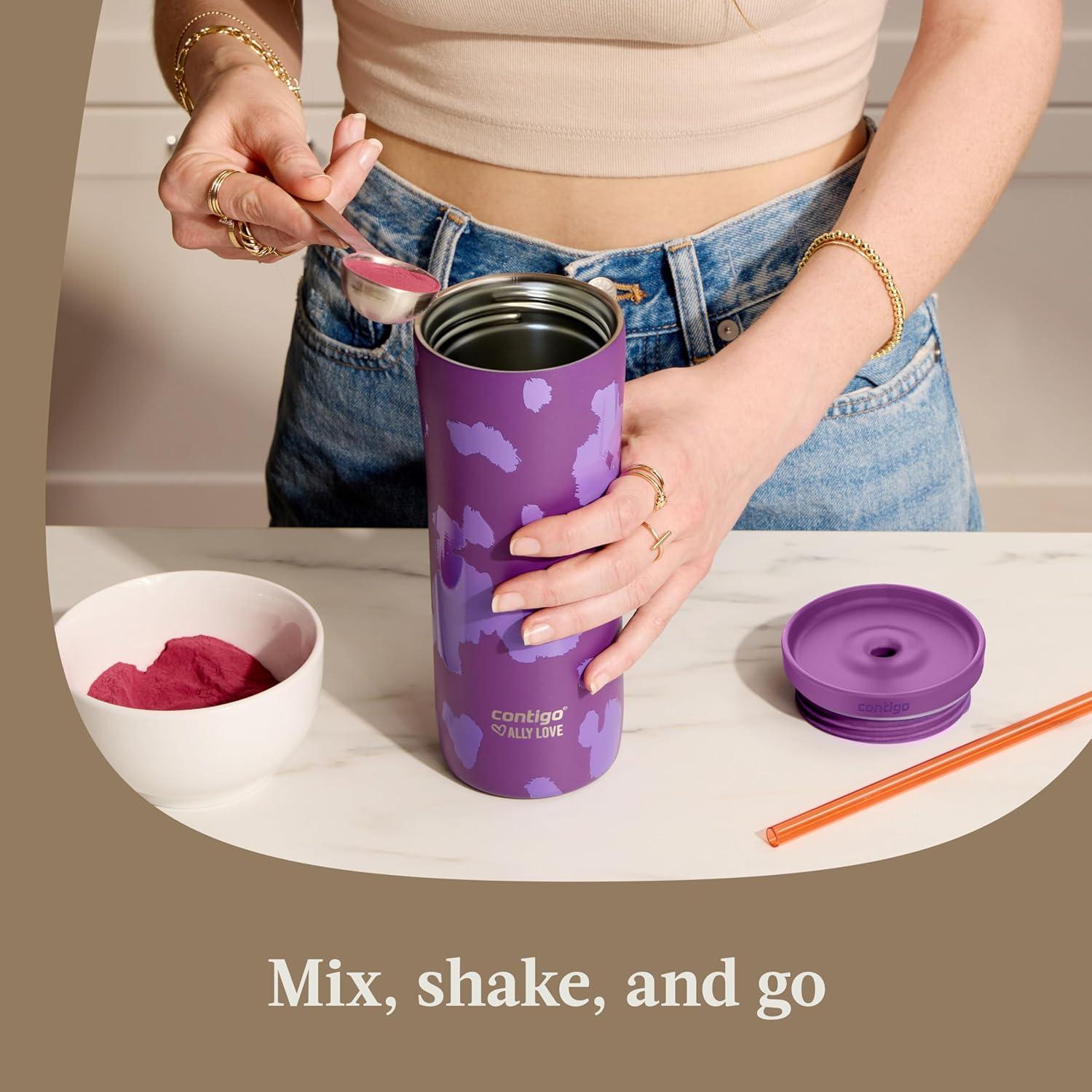 Contigo x Ally Love Stainless Steel Vacuum-Insulated Tumbler w/Straw, Autoclose Tech, Easy Clean Lid, Leak-proof Drinking, Keeps Drinks Cold 20hours, BPA Free, 24oz., Streeterville 2.0, Oatmilk(Violet)